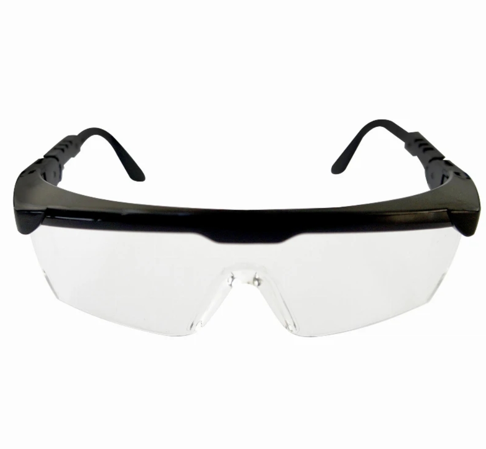 Lentes de seguridad para trabajo, material claro anti rayones y marco negro, cuenta con ajuste de posición en las patas laterales para mayor comodidad del usuario. Sube o baja el ángulo según se requiera.